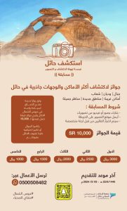 تعلن جمعية الاعلام السياحي بمنطقة #حائل عن مسابقة ( استكشف حائل ) بمشاركة صورة او مقطع فيديو ..
