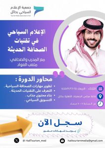 دورة تدريبية تنفيذية لتطوير مهارات الإعلاميين وخريجين قسم الإعلام وجميع الأقسام العاملة في السياحة .